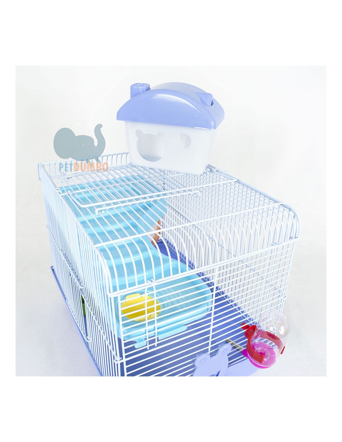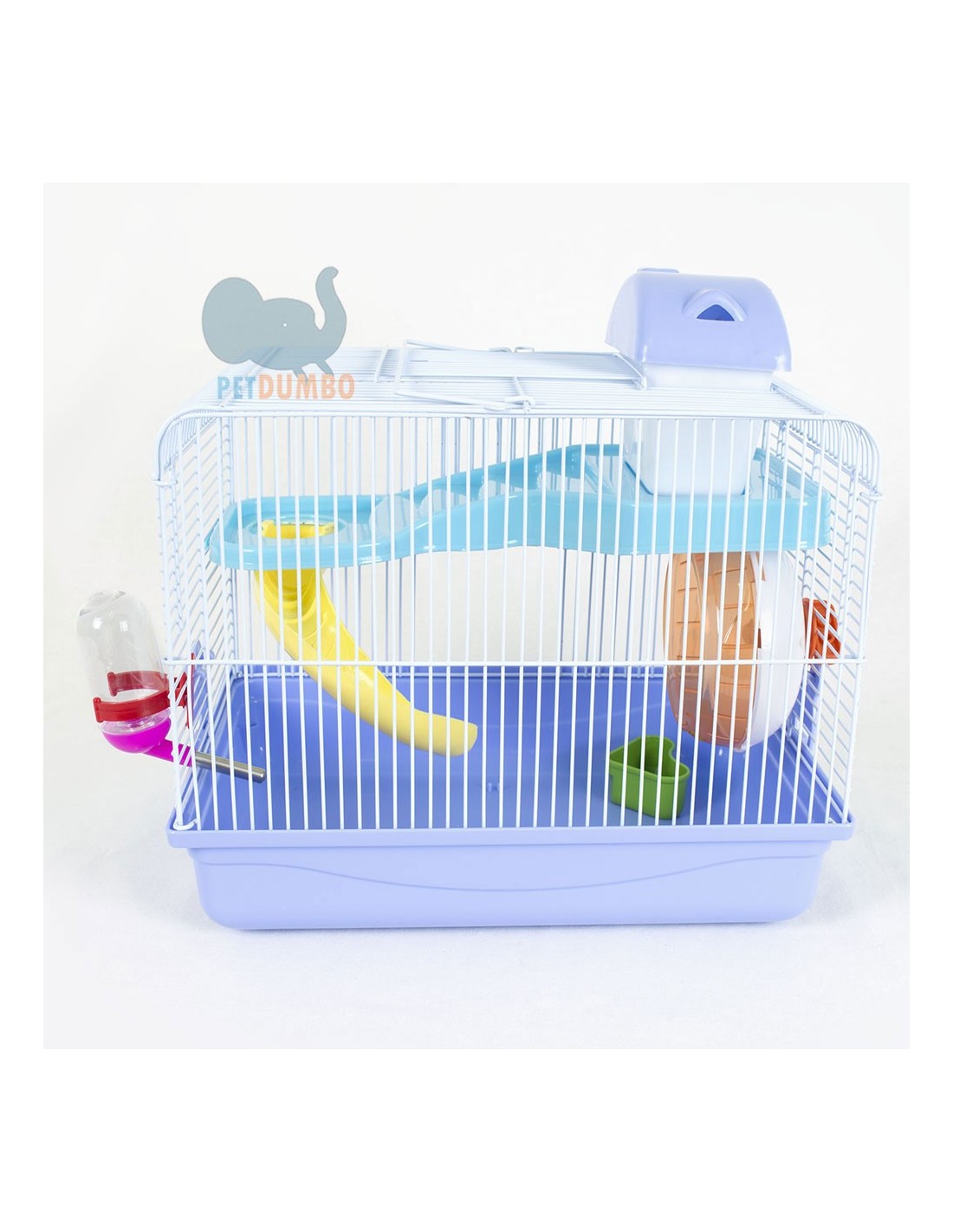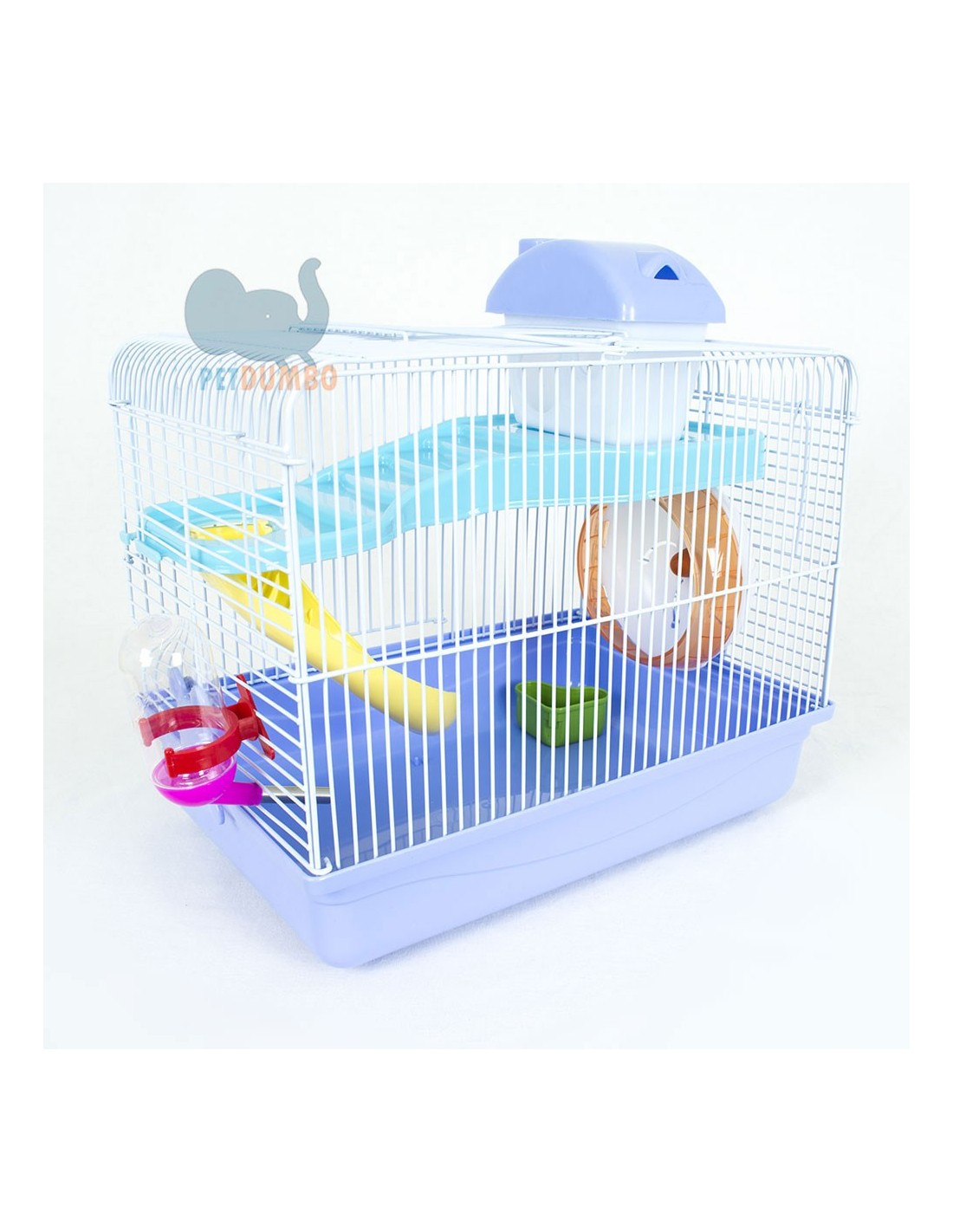 Ideale per tutti i criceti e per tutti i piccoli roditori. Con maniglia risulta molto facile e leggera nel traposto. Dotata di una comoda casina e di uno scivolo per accedere alla parte inferiore. Inoltre la gabbia è accessoriata di una ruota, un beverino e una ciotolina per il cibo.