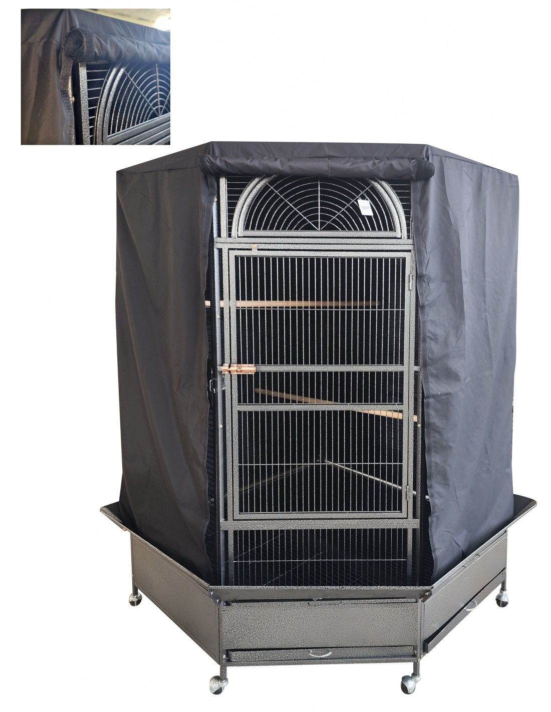 Ampia e ideale per ospitare grandi uccelli come ara, cacatua, cenerini, amazzoni o per offrire una lussuosa casa a uccelli di media taglia.